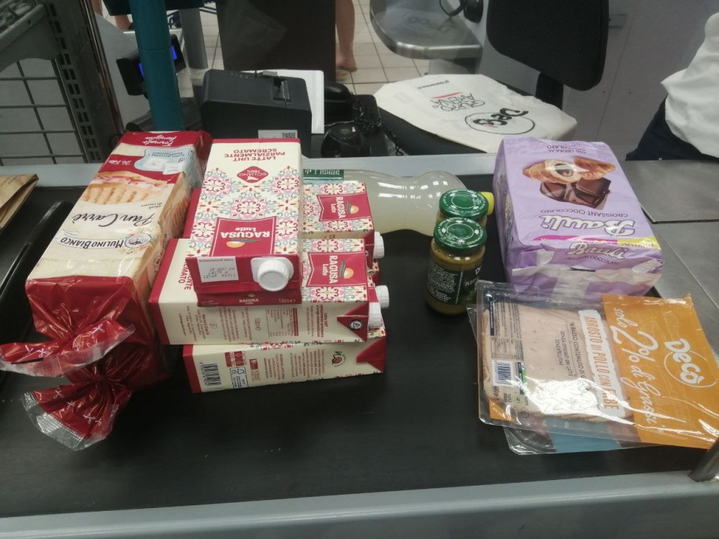 Reggel fél kilenckor már szinte tele volt a strand, egy kis tengerezés után (finom meleg víz, napsütés, kell ennél szebb reggel?) tábort bontottunk és továbbálltunk. Vásároltunk két napra kaját (2 csomag toastkenyér, 2 üveg pesto, 2 csomag felvágott, 5 liter tej, 1 limonádé és 6 croissant, 16 euróért), aztán a Google Maps utasításait követve megpróbáltunk eljutni Alcantara vasútállomására. Ti ne próbáljátok meg, a google átvert minket. Az eső is elkezdett esni, a vonatot lekéstük, ez már nem volt annyira szép, mint ahogy indult a nap.