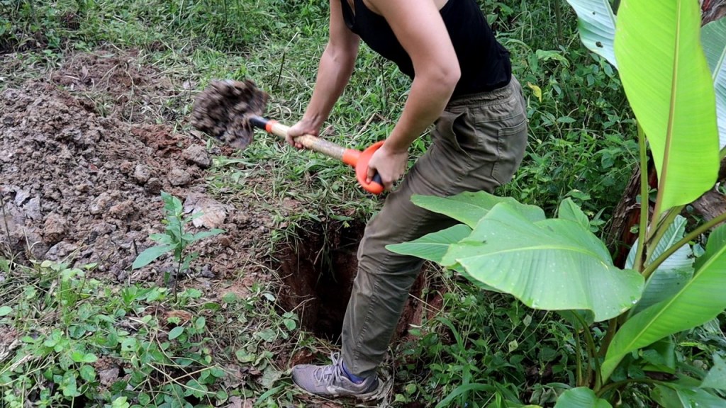 Készül a budi is, egészen jól zárhatóra kell megépítenünk, ha nem akarjuk, hogy madárpókok és kígyók közé kelljen bemennünk este.