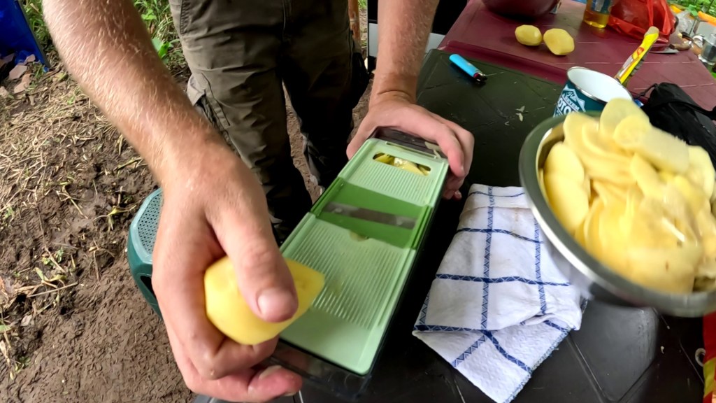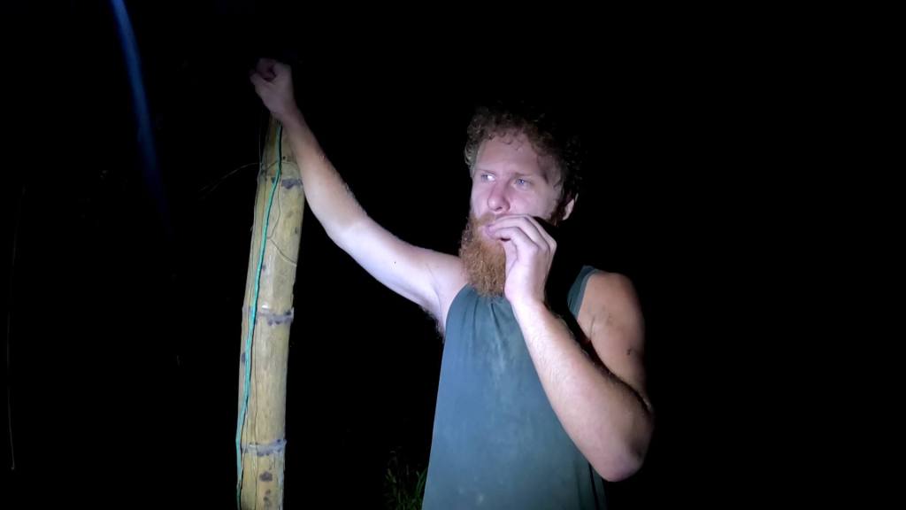 Majd este, hirtelen, hatalmas dörgések közepette jött egy irdatlan eső, és jó nagy szél kerekedett. Én, mint egy vitorláson, elkezdtem eszeveszetten lekötözni a tetőt, mert nagyon kellemetlen lenne, ha elvinné a szél. Úgy lefeszítettem, hogy egy ekkora szél meg sem mozdította – viszont a budi tetejét lekapta. Így visszatettem, mindezt sötétben, hihetetlen erős esőben, és mivel jóval magasabban van, mint én vagyok, úgy alakult, hogy egy 3-4 kilós tömör kő pont arcon talált, ahogy felfelé néztem. Megszédültem, és az az érzésem volt, mint ami akkor szokott lenni, amikor valami visszafordíthatatlan történik. Tudtam, hogy vagy betört a fejem, vagy kitört pár fogam, vagy – ahogy megpróbálok beszélni – érezni fogom, hogy megrepedt az állkapcsom. Rózának nem akartam elmondani akkor, mert még folytatni akartam, de muszáj volt leülnöm, így észrevette. Úgyhogy kis kényszerpihenő következett. Mondjuk, marhára fájt az állkapcsom, és majdnem összeesetem úgy megszéditett a becsapódás.